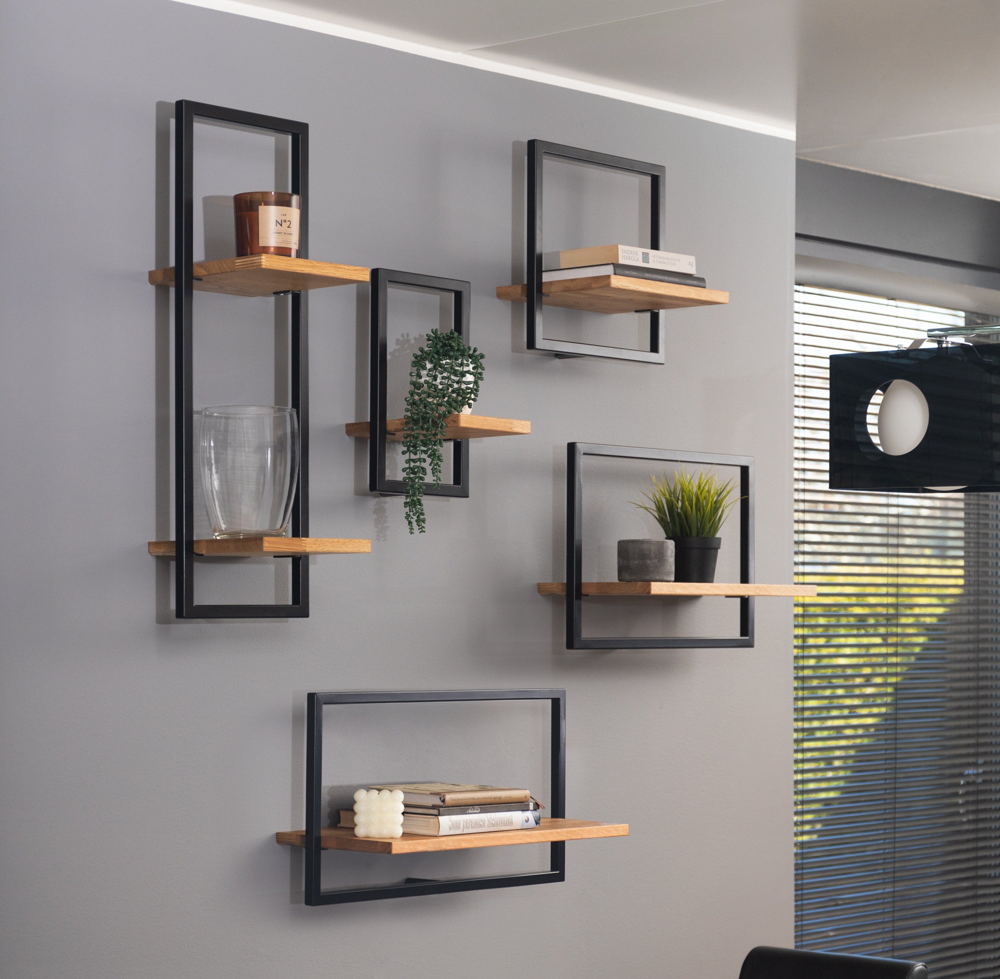 Crafted from solid oak wood, the smooth wooden shelves contrast perfectly with the sturdy metal frame for a unique modern look. Durable and easy to install, AKEN wooden wall shelves with metal frame make a great addition to any room.